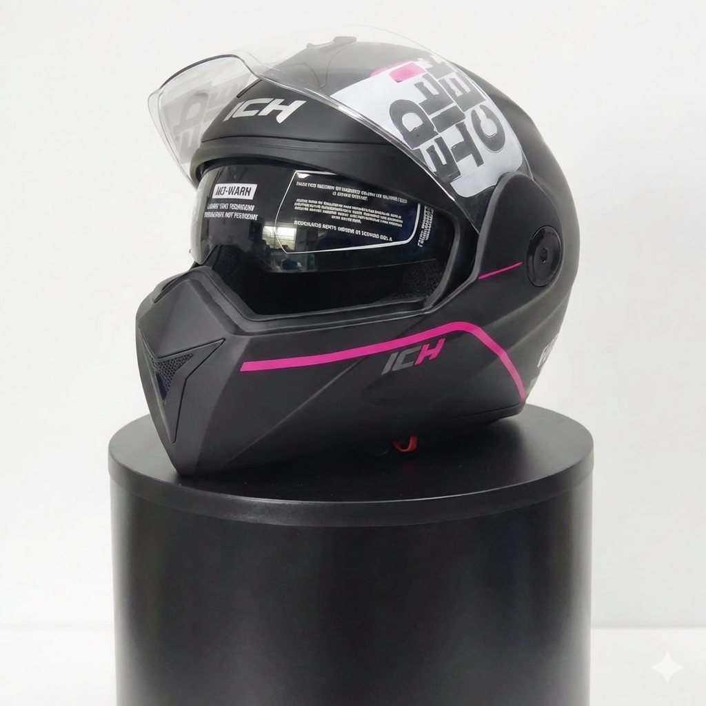 Casco ICH Negro Mate con Franja Rosa cantidad